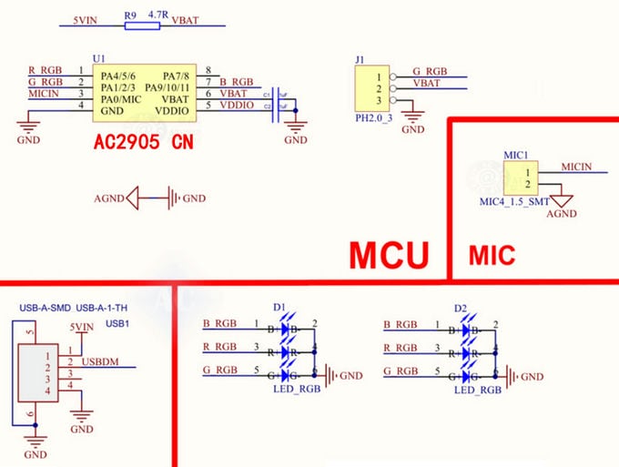 離線語(yǔ)音識(shí)別芯片-小夜燈AC2905中文版方案原理圖: