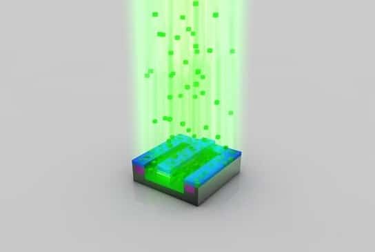 清除光刻膠:離子注入完成后,光刻膠也被清除,而注入?yún)^(qū)域(綠色部分)也已摻雜,注入了不同的原子。注意這時候的綠色和之前已經(jīng)有所不同。