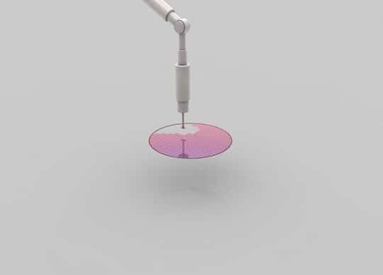 光刻膠(Photo Resist):圖中藍(lán)色部分就是在晶圓旋轉(zhuǎn)過程中澆上去的光刻膠液體,類似制作傳統(tǒng)膠片的那種。晶圓旋轉(zhuǎn)可以讓光刻膠鋪的非常薄、非常平。
