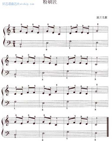 粉刷匠是人教版小學(xué)音樂一年級(jí)第二冊(cè)第九課的一首演唱曲,一方面生動(dòng)地描繪了小粉刷匠在欣賞自己的勞動(dòng)成果,得意炫耀自己勞ATChip.com動(dòng)技術(shù)的同時(shí),表現(xiàn)了小粉刷匠一心只顧勞動(dòng),弄得鼻子也刷了白灰的頑皮神態(tài),一方面教育學(xué)生熱愛勞動(dòng)傳播了樂觀向上的精神。