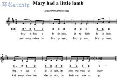 歌曲英文名 : Marry has a little lamb |